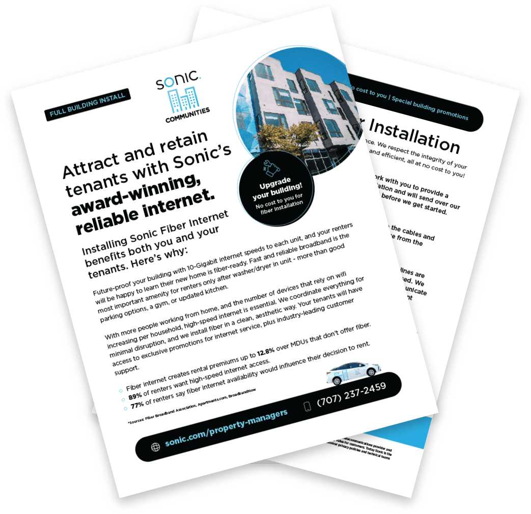 We’ll take care of scheduling and communicating with your tenants to ensure as little disruption as possible. They’ll love the internet speeds, and you’ll love the convenience and perks of working with us.
